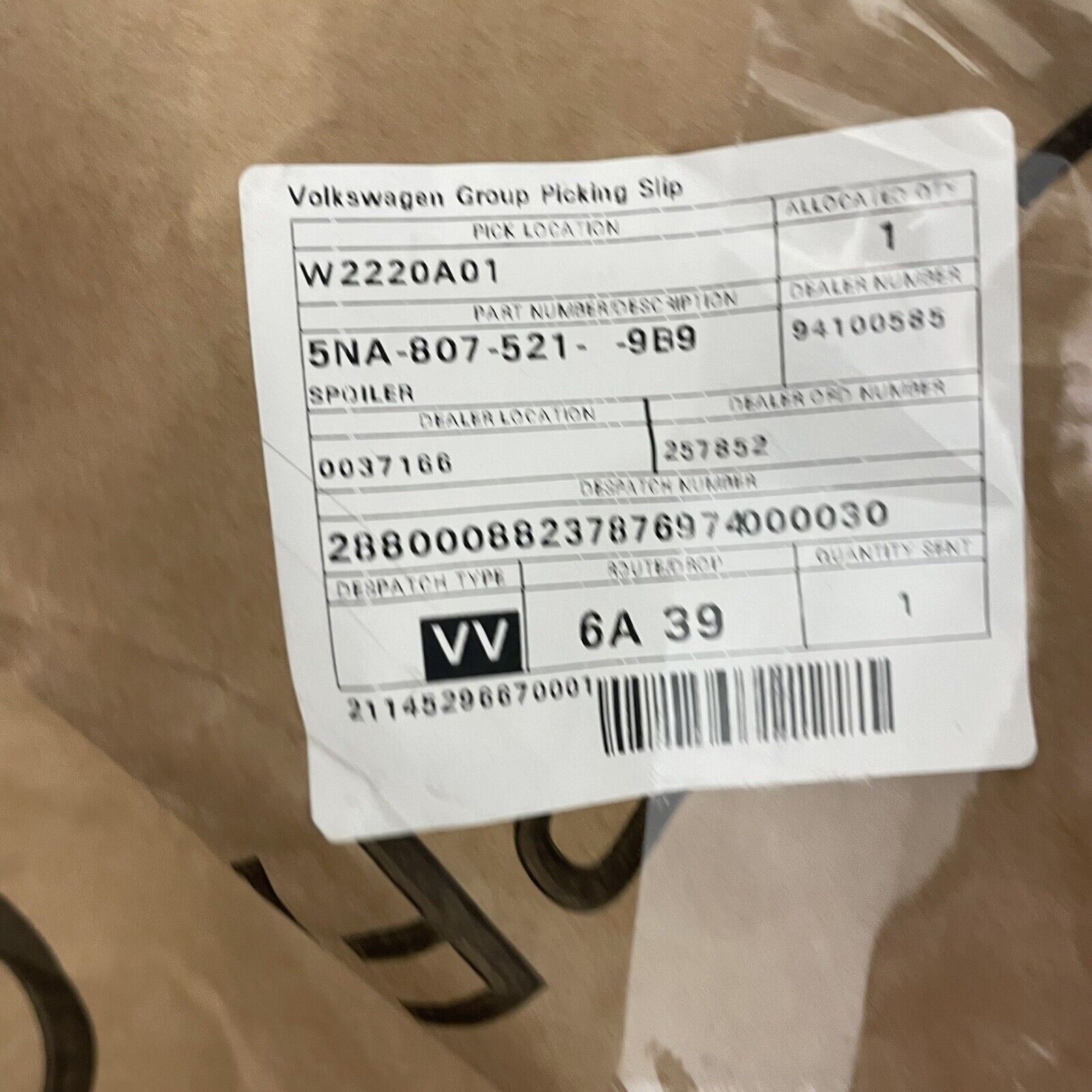 Genuine 2016 VW Tiguan Rear Bumper Lower Valance 5NA8075219B9