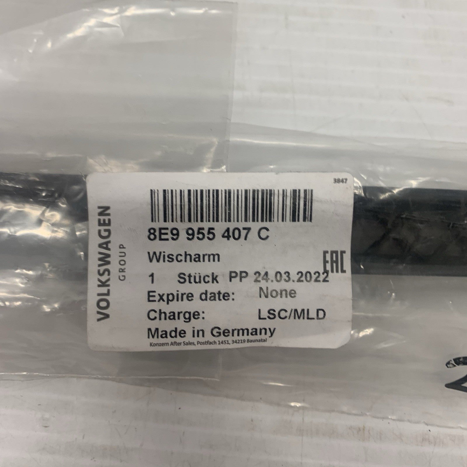 Genuine Audi A3 8P Rear Wiper Arm (8E9955407C)