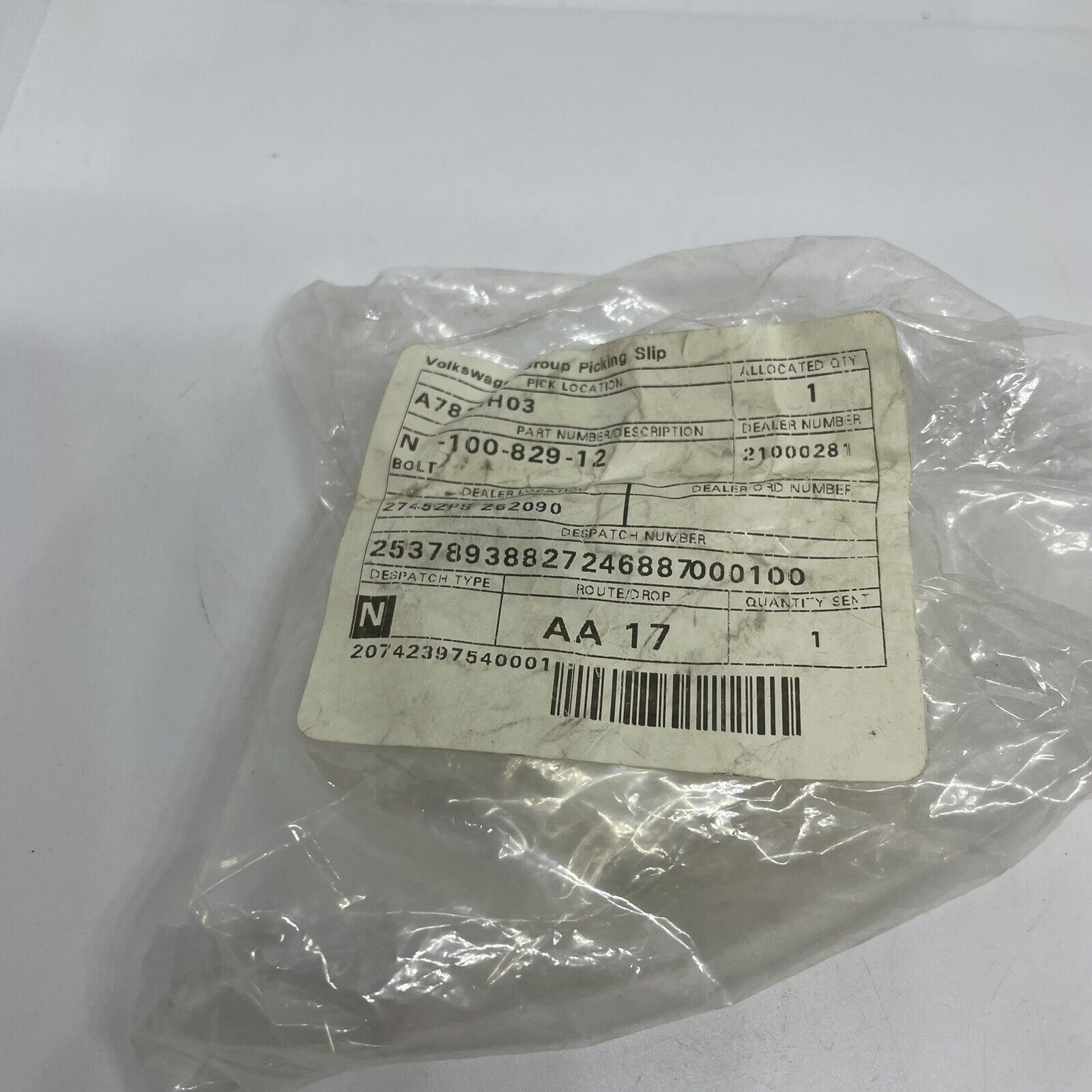 VW Bolt x1 supplied - N10082912 Genuine New VW OEM Part